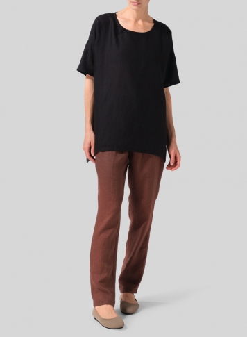 • Linen Relaxed Handmade Knot Buttons Top
