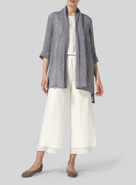 Gauze Linen Shawl Collar Open Front Cropped Jacket