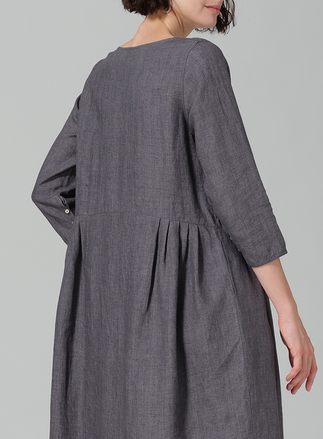 Linen A-line Mid-Length Pleated-Waist Dress