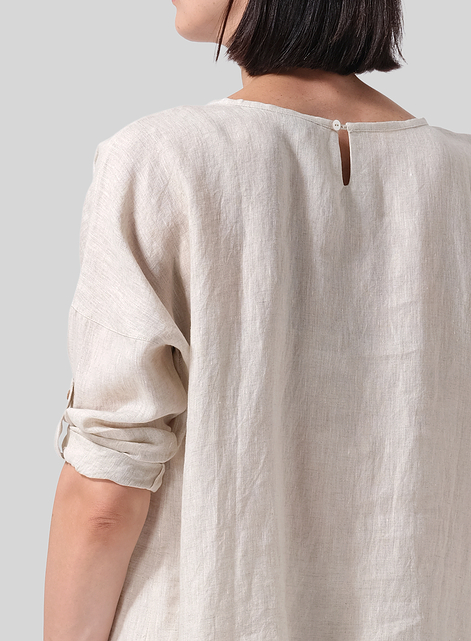 • Linen Loose Pleated Roll-Tab Sleeve Top