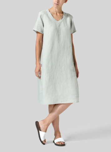 Linen A-shape Patch Pockets Tunic Dress