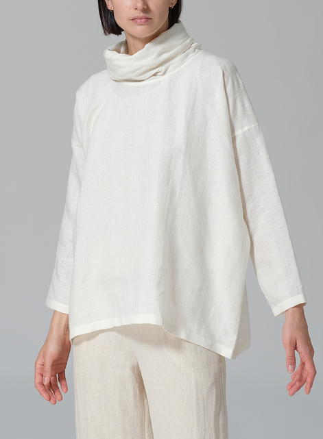 Cotton Linen Long Sleeve Cowl Neck Top