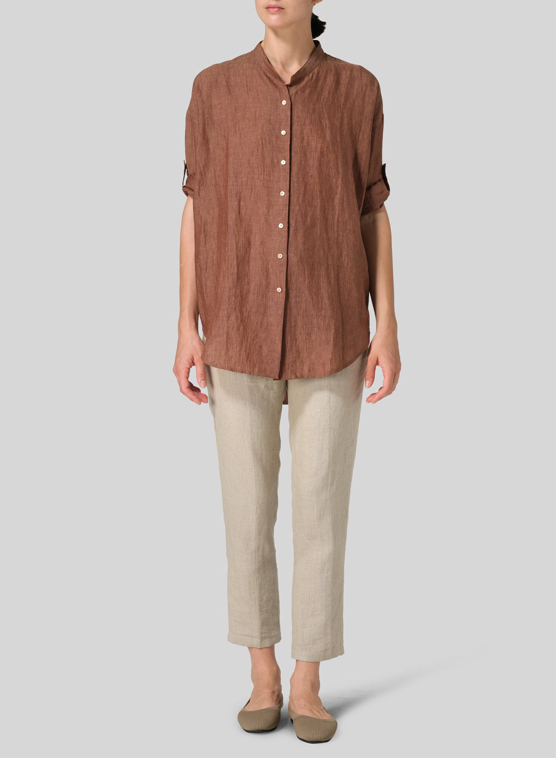 Linen Stand Collar Long Shirt