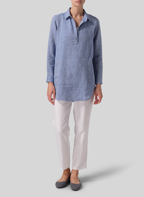 Linen Classic Collar Half Button Down Tunic