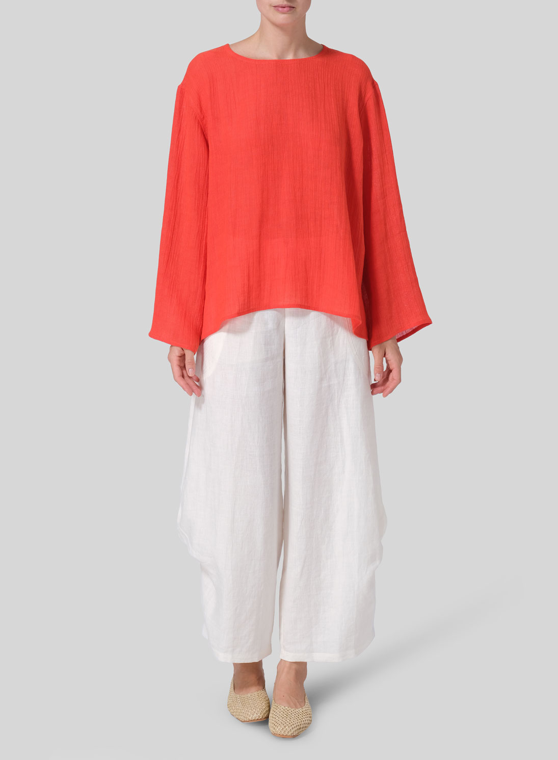 Linen Relaxed Scoop Neckline A-Shape Blouse