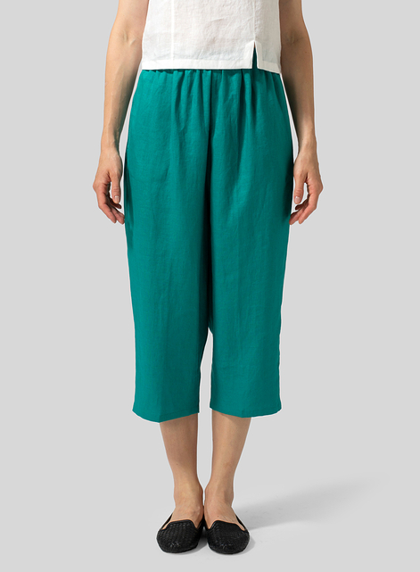 Linen Double-Layer Cropped Pants With Sea Shell Button