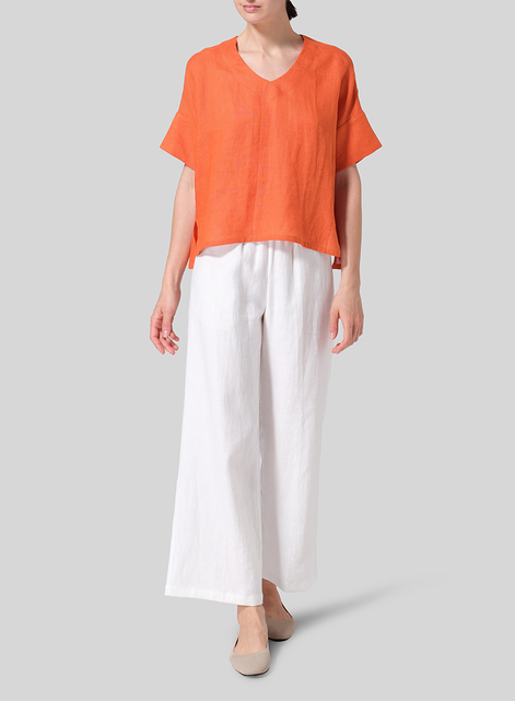 Linen Sloped Shoulder Wide Boxy V-neck Top