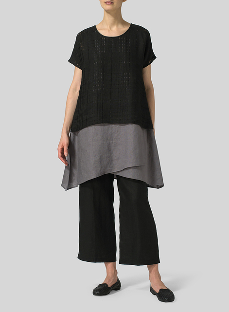 Two Tone Linen Handmade Knot Buttons Straight-Cut Top