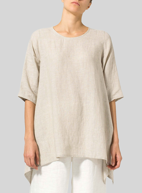 Linen Half Sleeves Handkerchief Hem Tunic