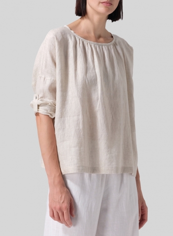 Linen Loose Pleated Roll-Tab Sleeve Top