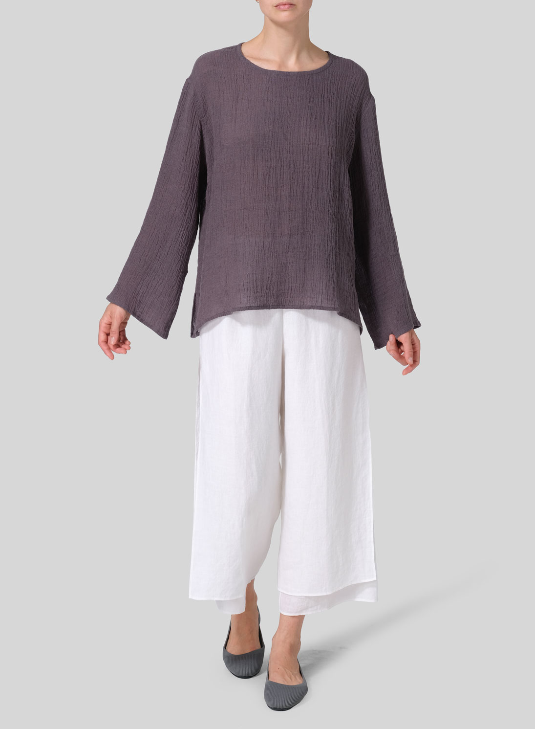 Linen Gauze Long Sleeve Loose Fit Blouse