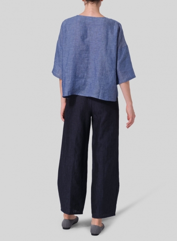 Linen Dropped Shoulder Handmade Knot Button Top