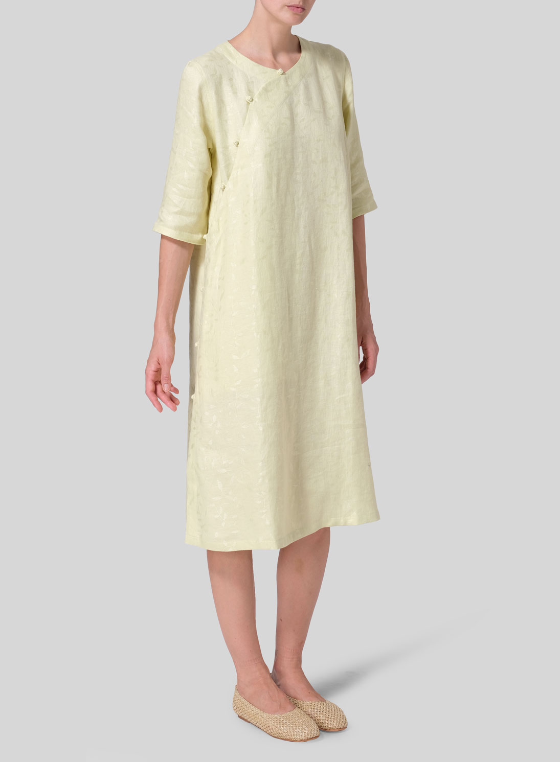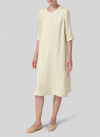 Soft Lime Jacquard Linen Tunic with Vintage Mandarin Knot