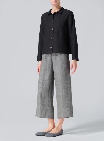 Linen Cropped Shirt Jacket with Pockets