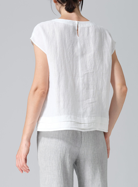 Linen Boxy Cap Sleeves Cropped Top