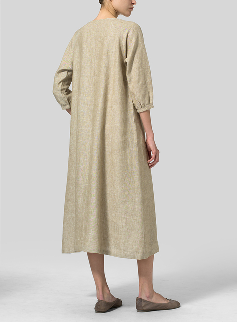 Linen Elbow Sleeve Long Dress