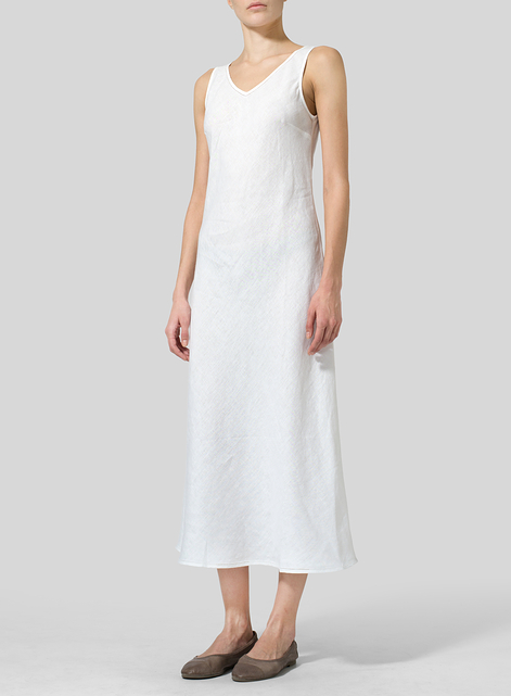 Linen Bias Cut Sleeveless Long Dress