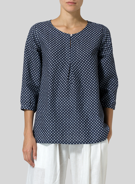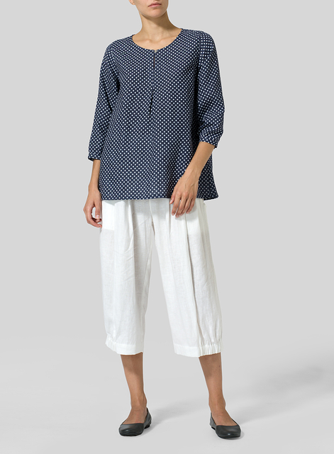 Linen Half Sleeve Inverted Front Pleat Blouse