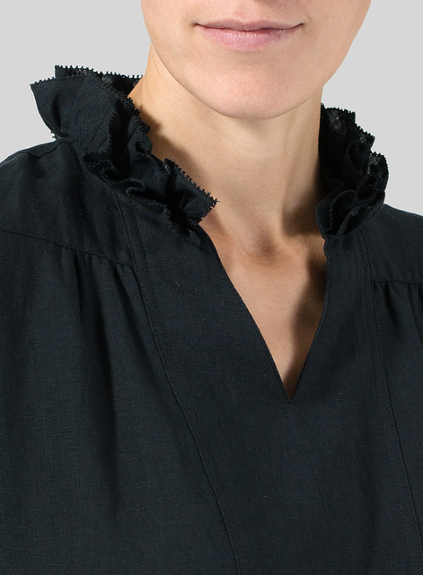 Linen Ruffle Stand Collar Top
