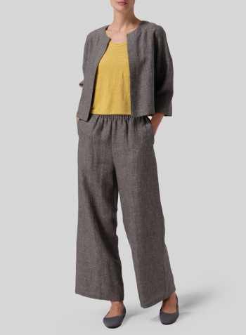 Heavy Linen Open Front 3/4-Sleeve Cropped Jacket