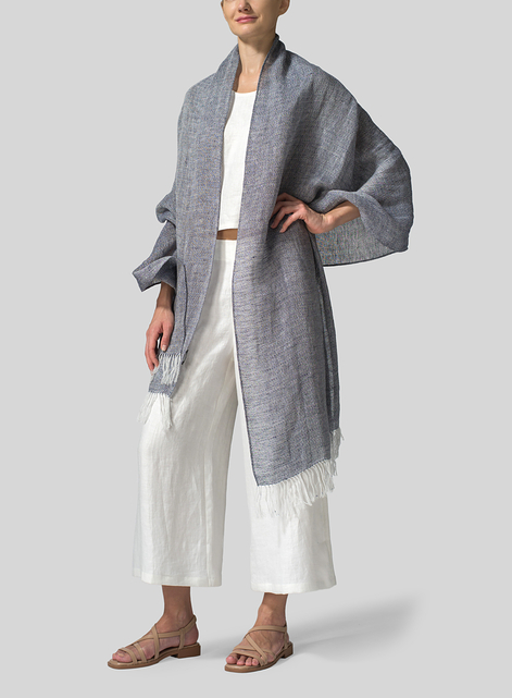 Linen Hand-crafted Two Tone Blue Long Scarf