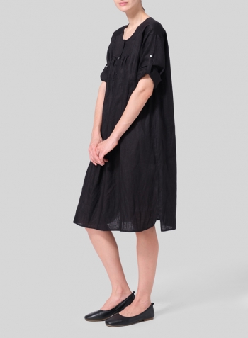 Linen Loose Roll-Tab Sleeve Midi Dress