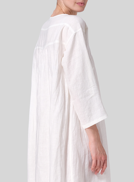 Linen Loose Roll-Tab Sleeve Midi Dress
