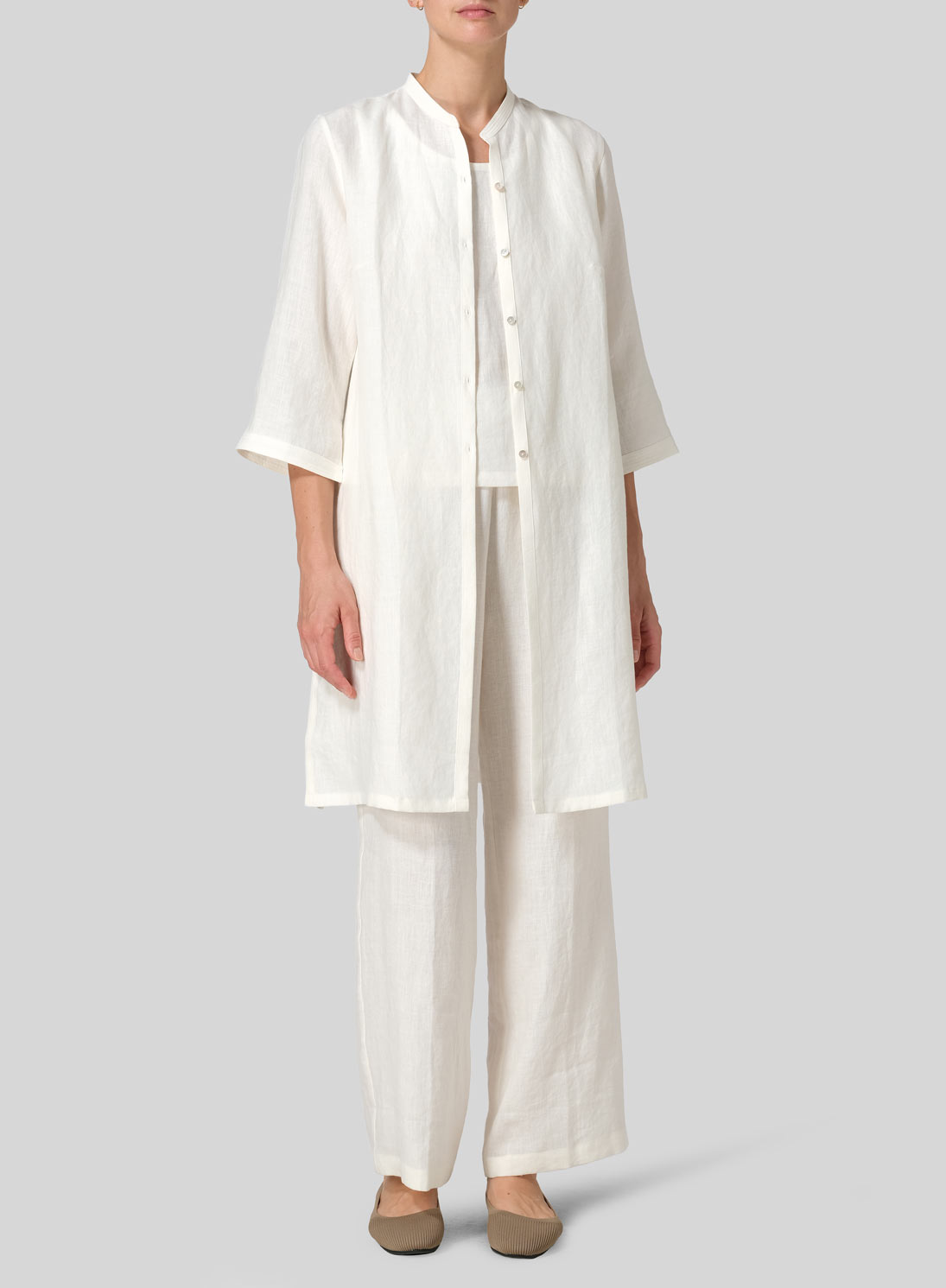 Linen Mandarin Collar Simple Long Blouse