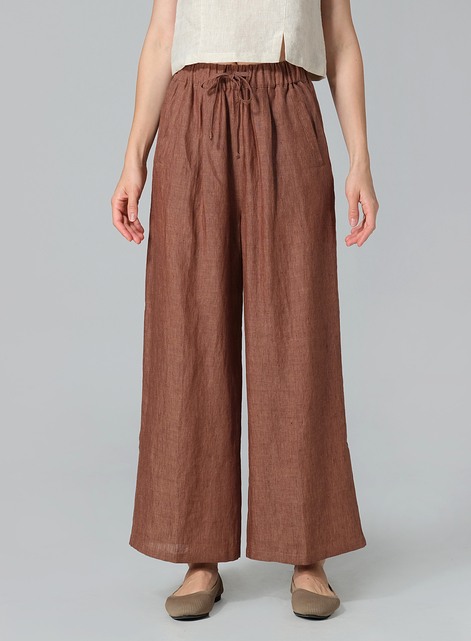 Linen Straight Elastic Long Pants