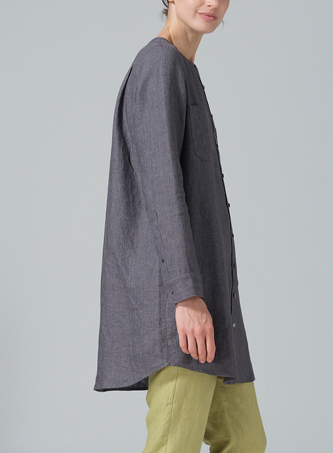 Linen Open Front Long Shirt