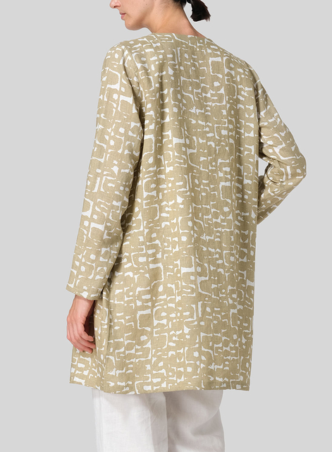 Pattern Linen Handmade Knot Buttons Top