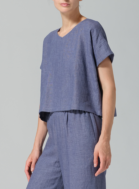Linen Round Neck Box Top