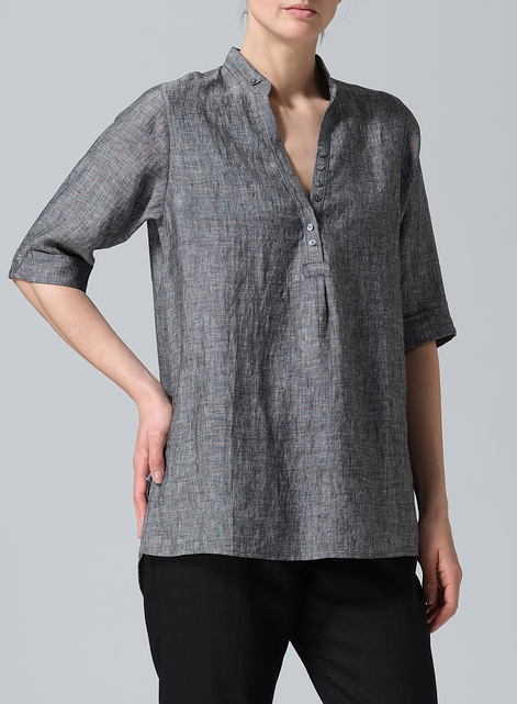 Linen V-Neck Three-quarter Sleeves Shirt