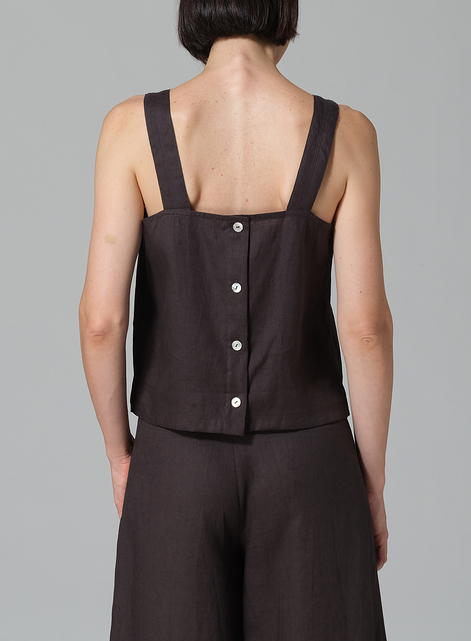 Linen Square Neckline Button-Back Straight Short Tank